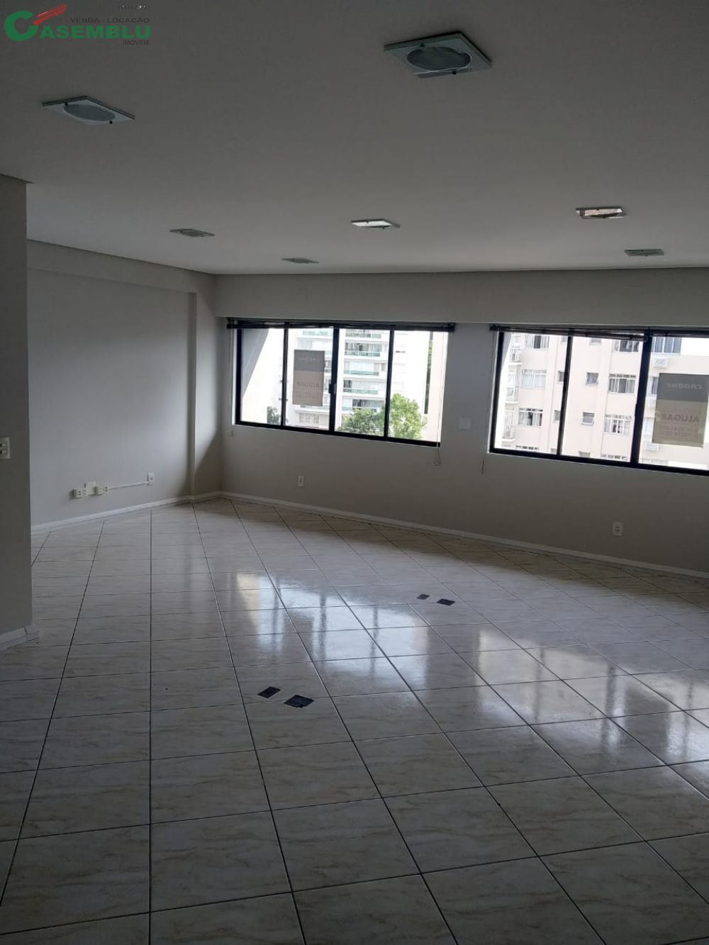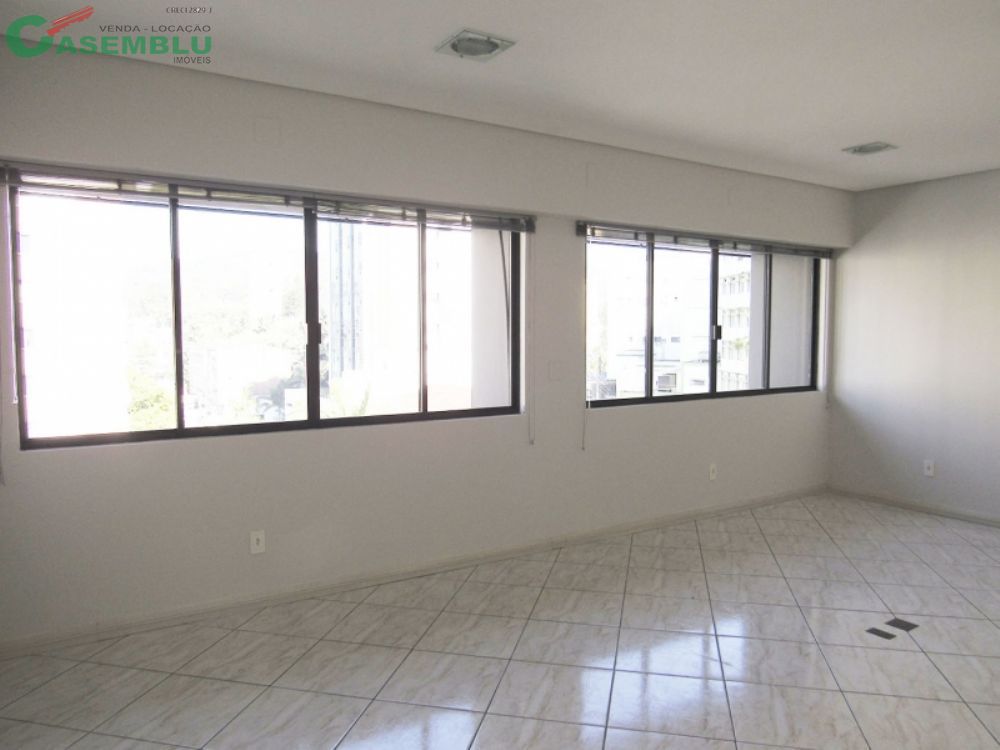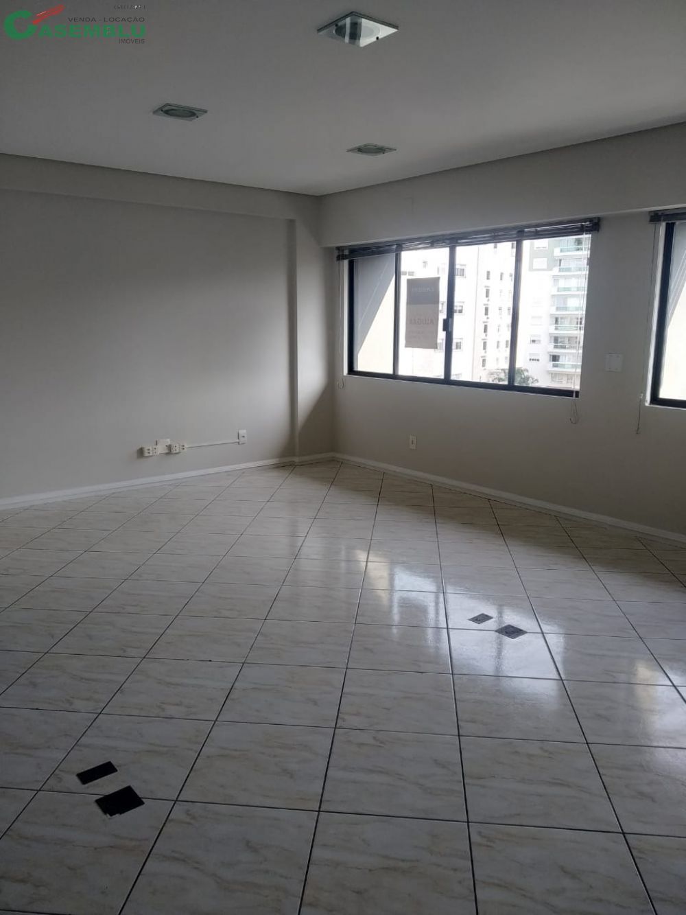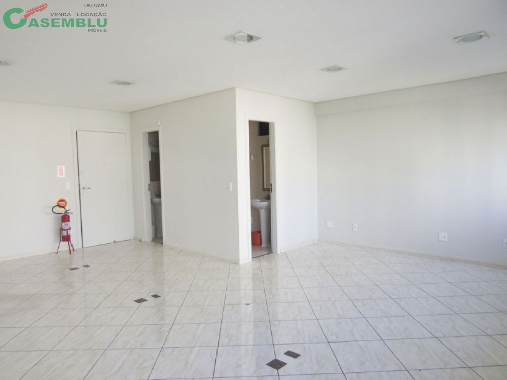 Sala comercial com aproximadamente 46m², piso cerâmico, 02 banheiros e uma vaga de garagem.