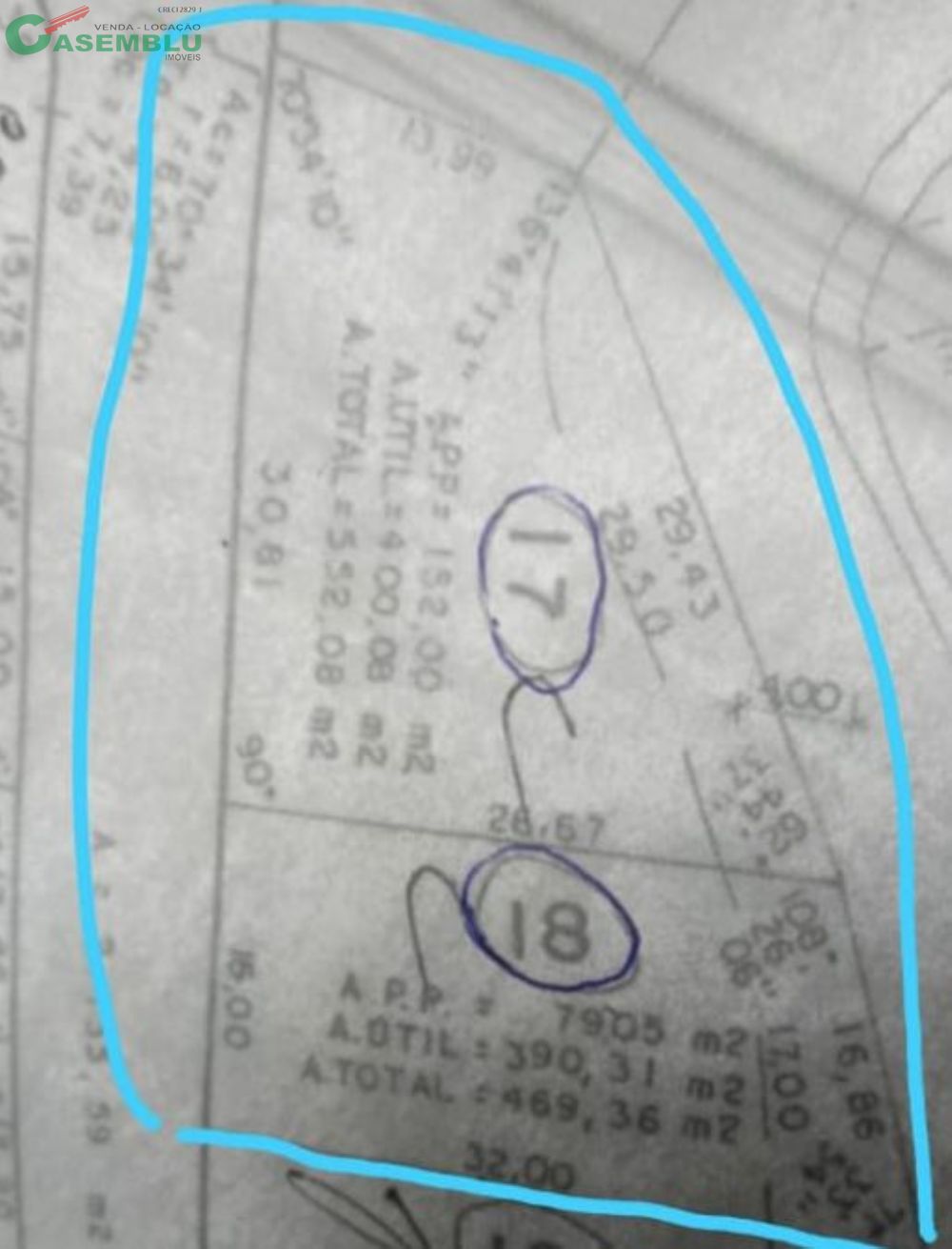 Lote 17 com as seguintes áreas : A.total 552,08m2 sendo útil 400,08 e APP 152,00m2. o lote 18 com área total de 450m2 sendo 405 área útil e 45,00 de APP.